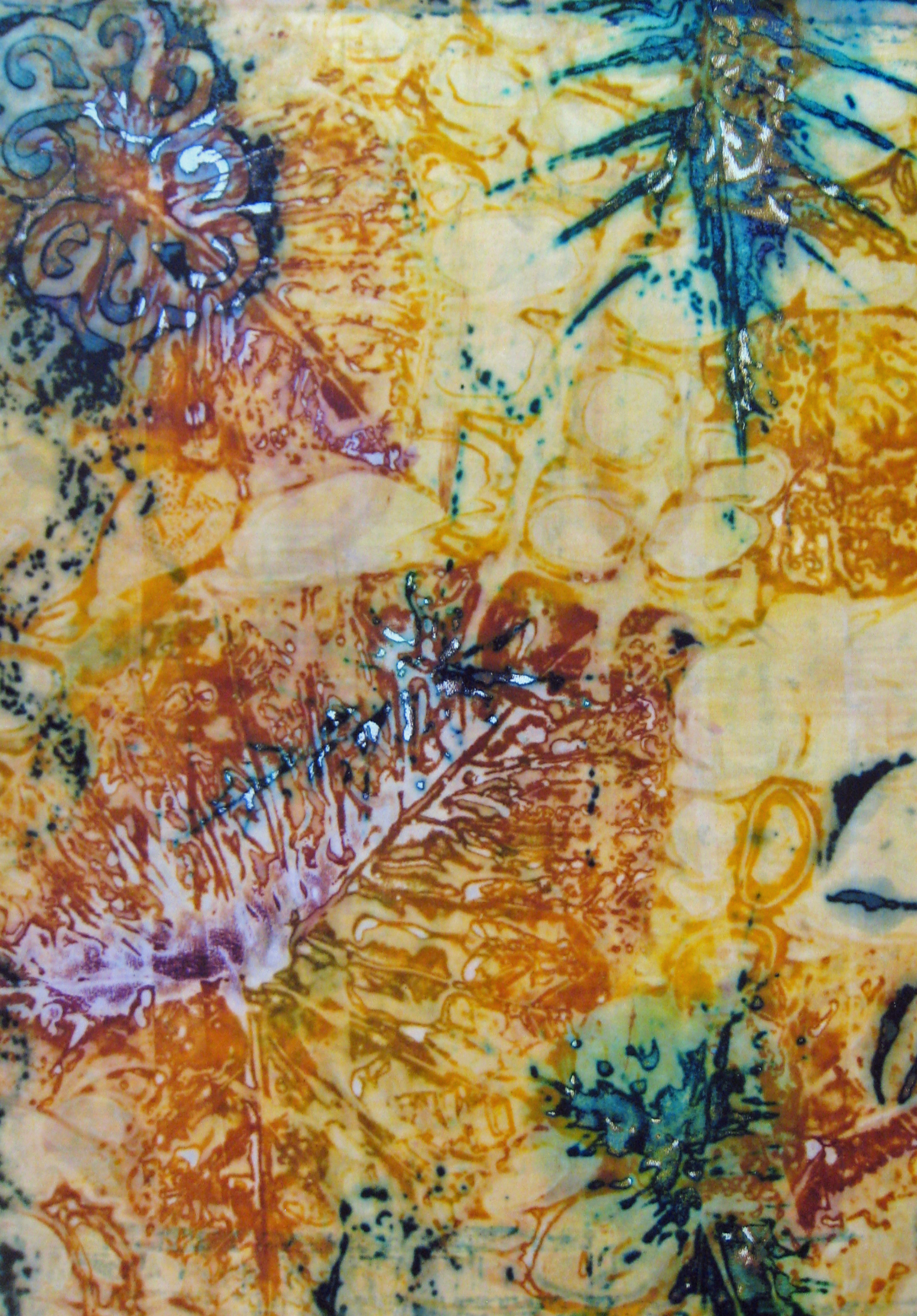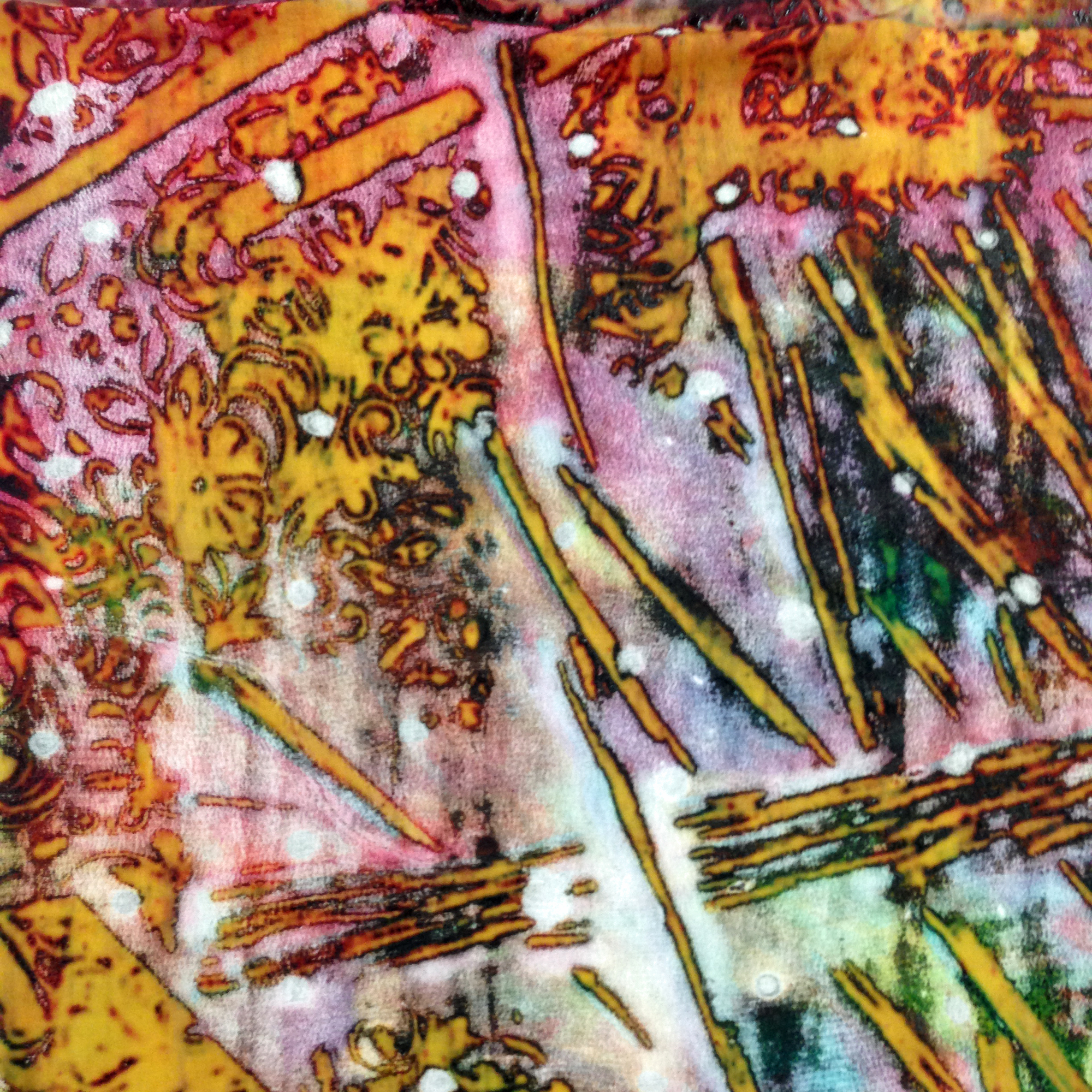 Materials provided: Fiber reactive dyes, thickeners and all necessary chemicals, handouts, textures, samples, wax and brushes for wax, hot glue gun and glue, tracing paper. Instructor will also provide a small squeegee and syringe for students to take home.