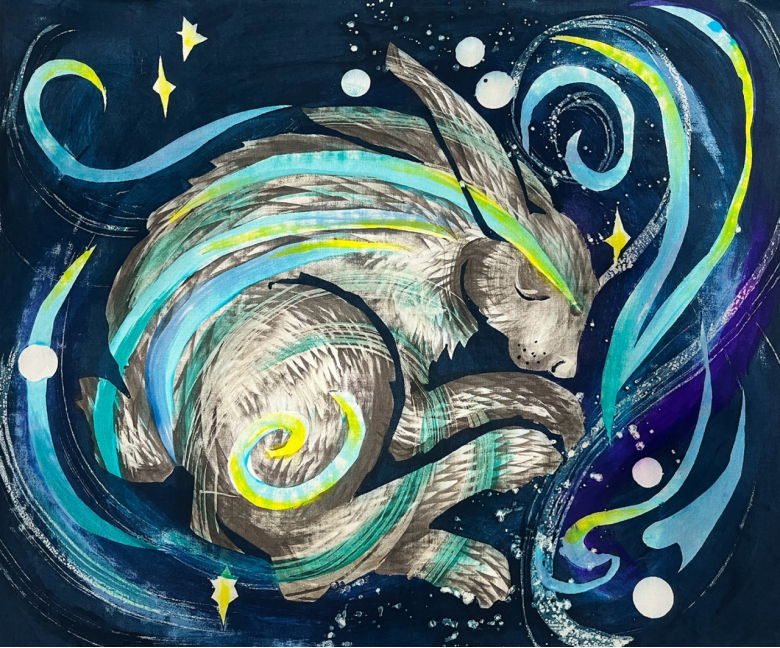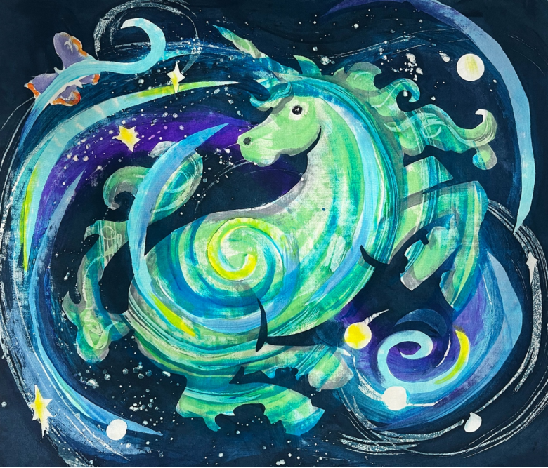Description: In this workshop, participants will use stencils and thickened dye to paint constellations come to life in the night sky. We’ll explore how to suggest movement, starlight, and layered effects while keeping the process playful and accessible. Fantasy animal constellation stencils will be provided, and stencil material will be provided for those who wish to create their own—there are so many constellations from many different cultures, but participants will be encouraged to make one up if their favorite animal isn’t represented! Painters of all levels will leave with both new techniques and a silk panel that feels alive with motion. Learning Objectives: • Learn how to create the illusion of depth and movement using thickened dyes • Experiment with stencils to simplify complex imagery • Complete a silk panel featuring a night sky complete with a constellation-come-to-life MATERIALS PROVIDED: Provided large foam core boards (approx. 30x49), Grafix Mylar, Spraymount, tape, stickers, pushpins, plates for palettes, and precut stencils. Paint kits will also be provided courtesy of Pintler Paints. MATERIALS FEE (APPROX.)_$35